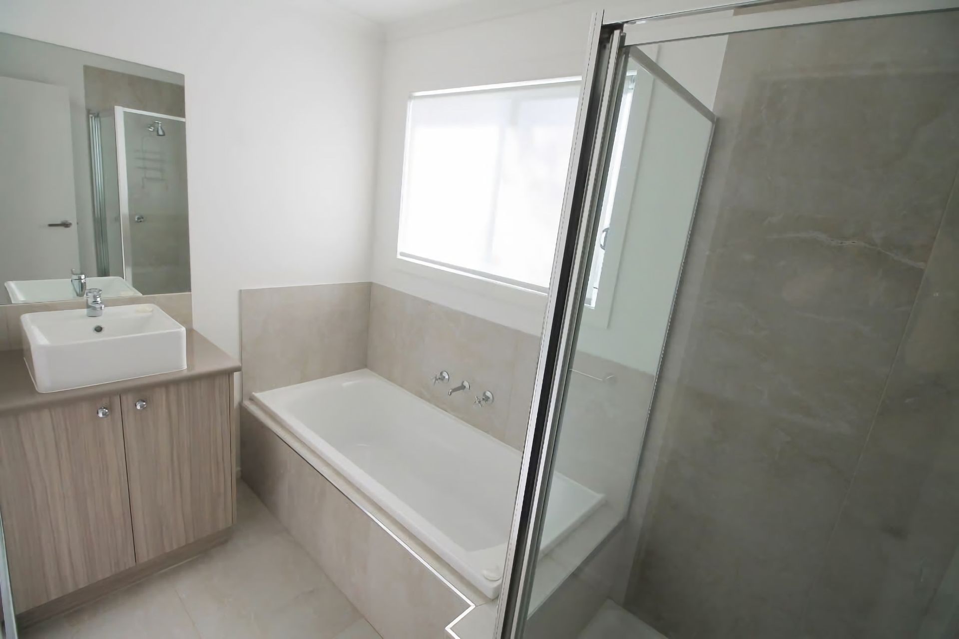 The downstairs bathroom has both a full sized bath tub and shower, with a separate toilet and laundry. The laundry has a washing machine and dryer.