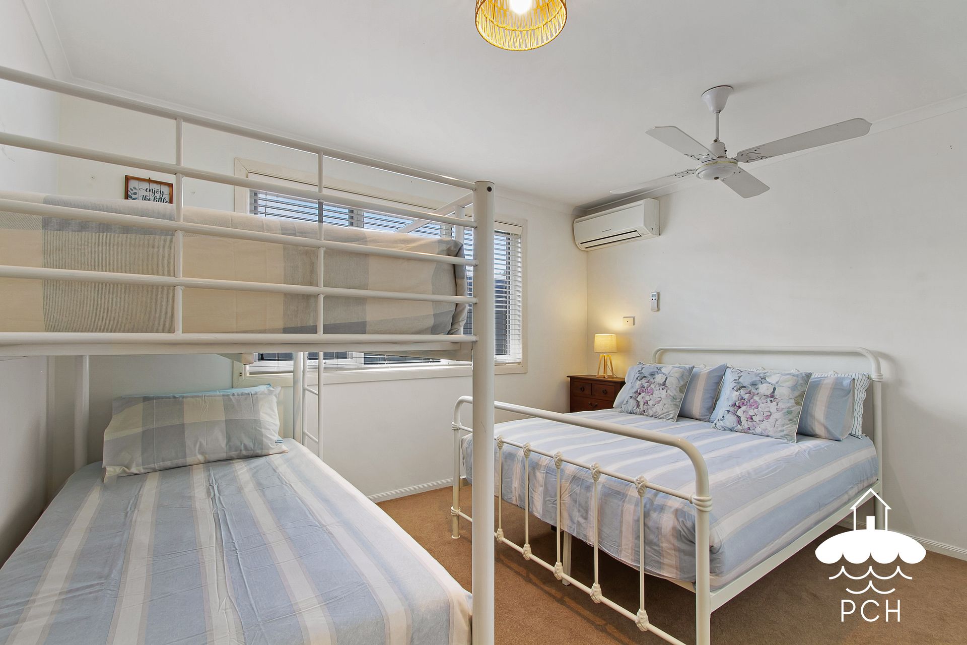 3 spacious bedrooms (1 Queen, 1 Double with Single Bunks and 1 Queen)