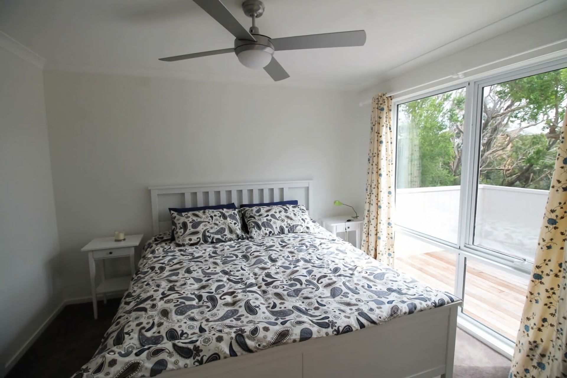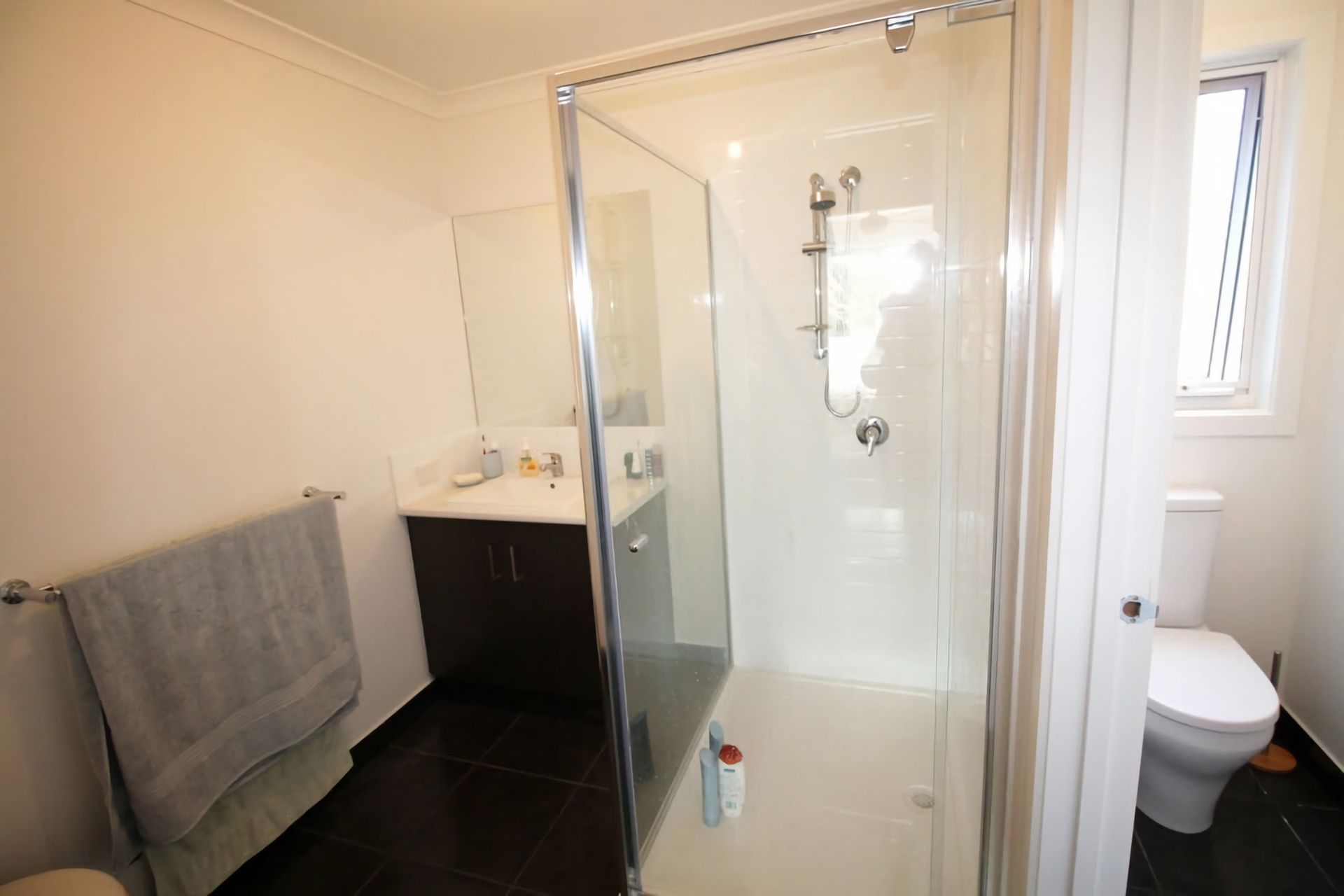 The master bedroom has a king size bed, spacious walk in wardrobe and ensuite with shower, vanity and separate toilet. There is also a ceiling fan in the master bedroom.