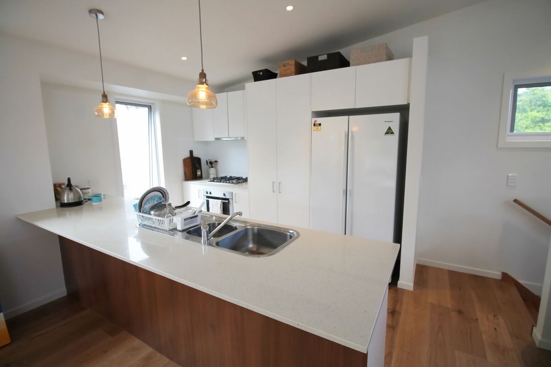 The kitchen is bright and modern, with gas cooktop, oven, microwave, large two-door fridge and dishwasher. Plenty of dining furniture both inside and out on the rear deck, along with a BBQ, make this home ideal for sharing meals with friends and family.