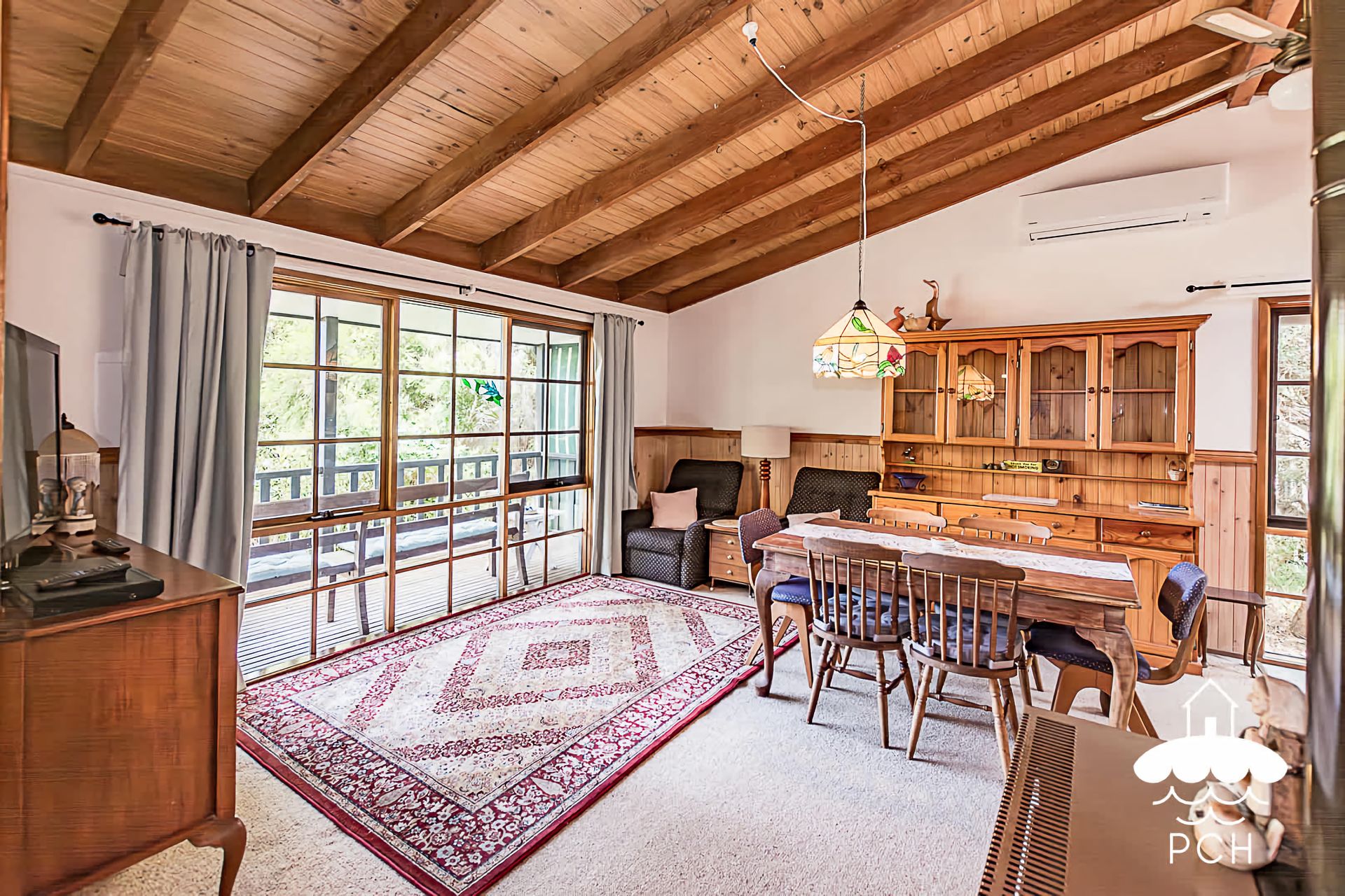 - Large Kitchen and dining space with a Coonara wood heater for the colder months, a small amount of wood is supplied for your stay.
