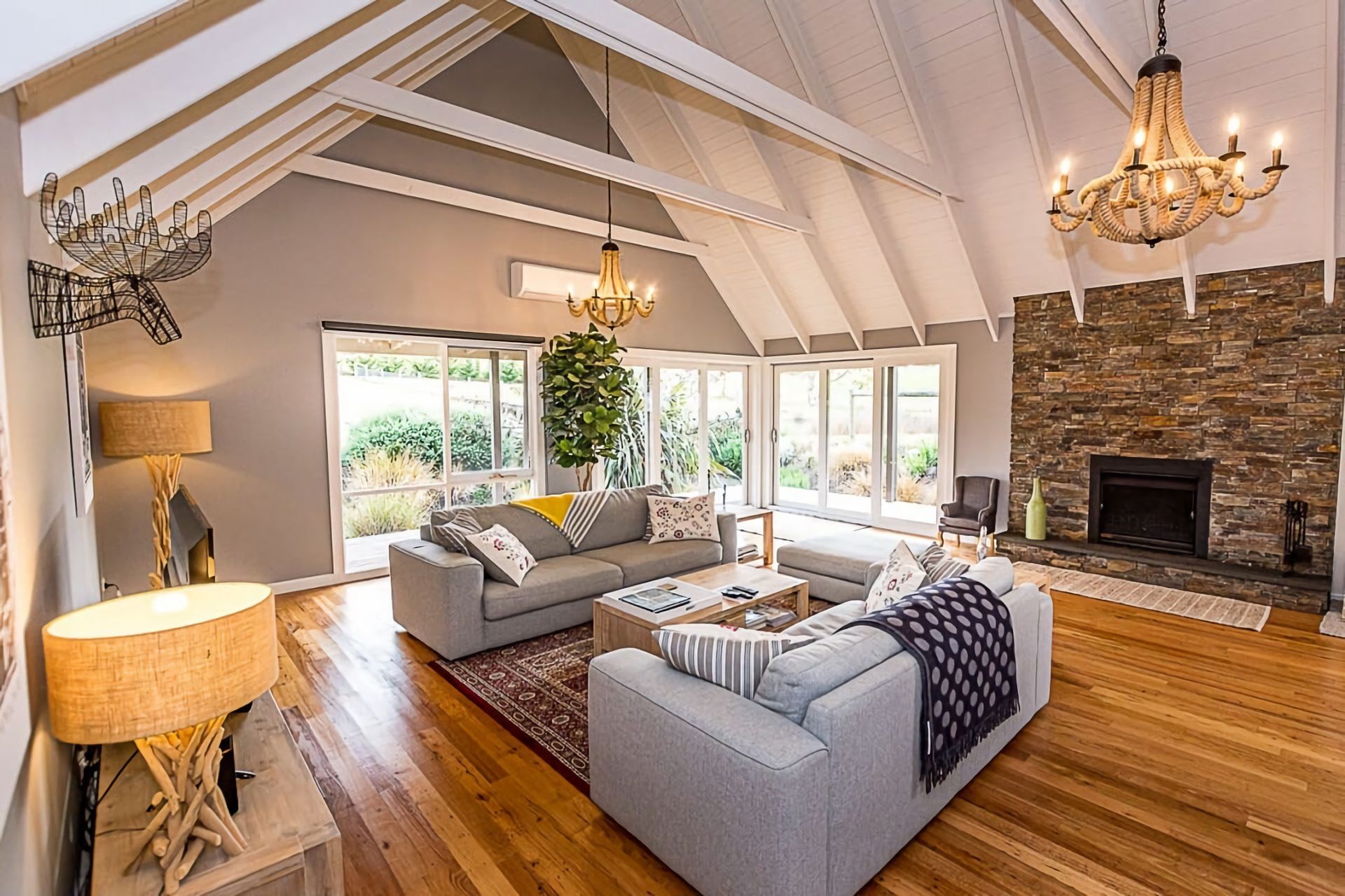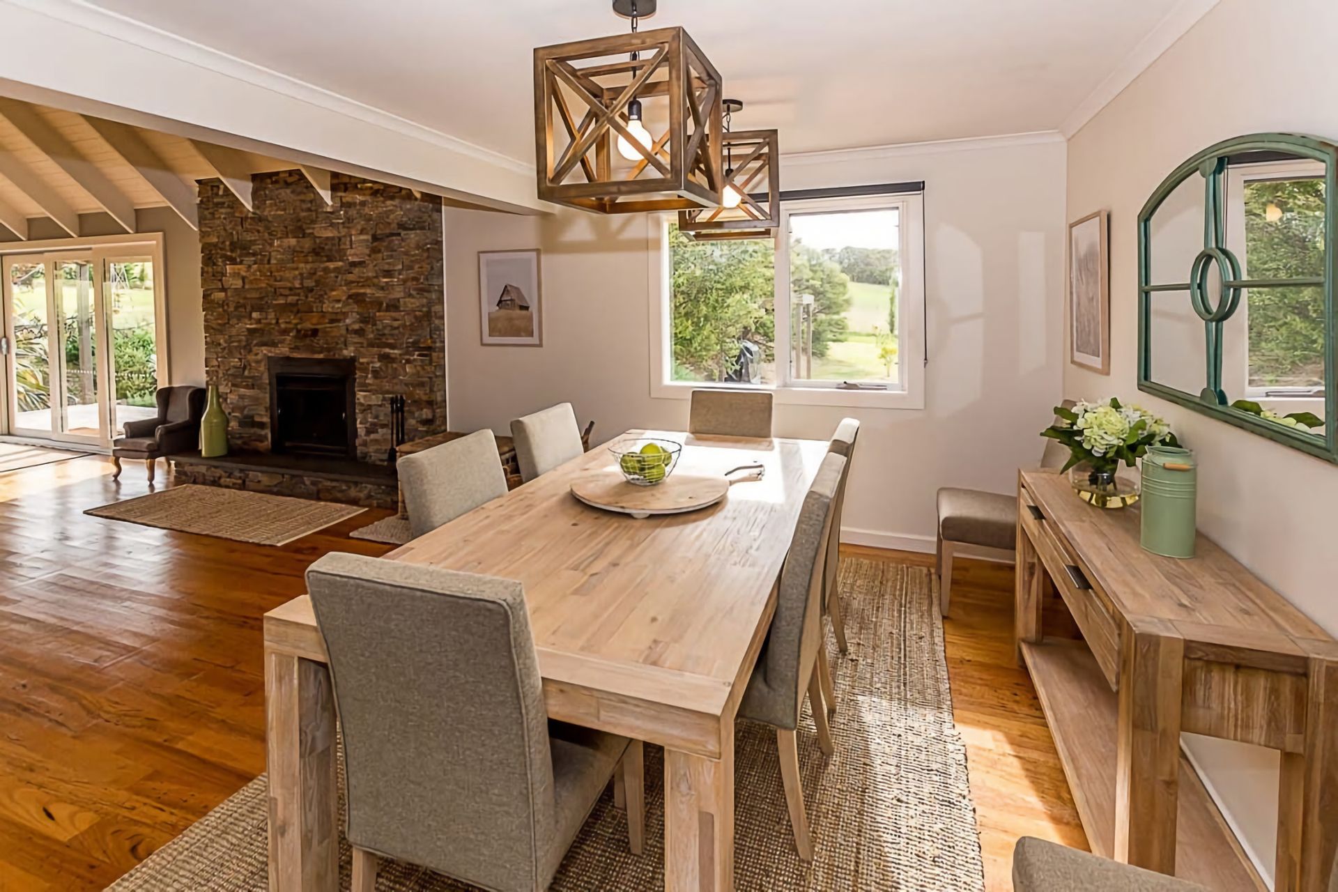 The kitchen has quality stainless steel appliances and an RCA, main bathroom with large bath and shower over bath, laundry, a well appointed dining and open living area with a wood heater for the cooler months.