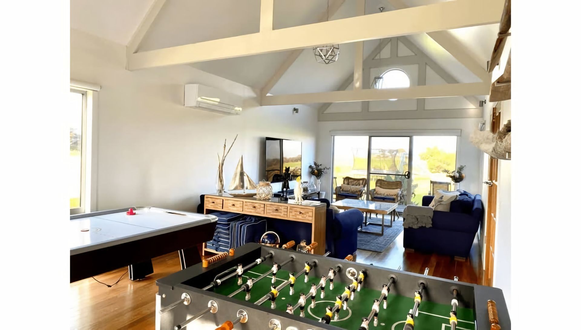 Comfortable lounge with cathedral ceiling, featuring two large sofas, large TV and DVD/Blu-ray library for a relaxing evening in. Books, magazines, puzzles and games, foosball and air-hockey tables too, to suit all ages. Please be mindful that this property does not have WIFI - A hideaway that is all yours to enjoy.
