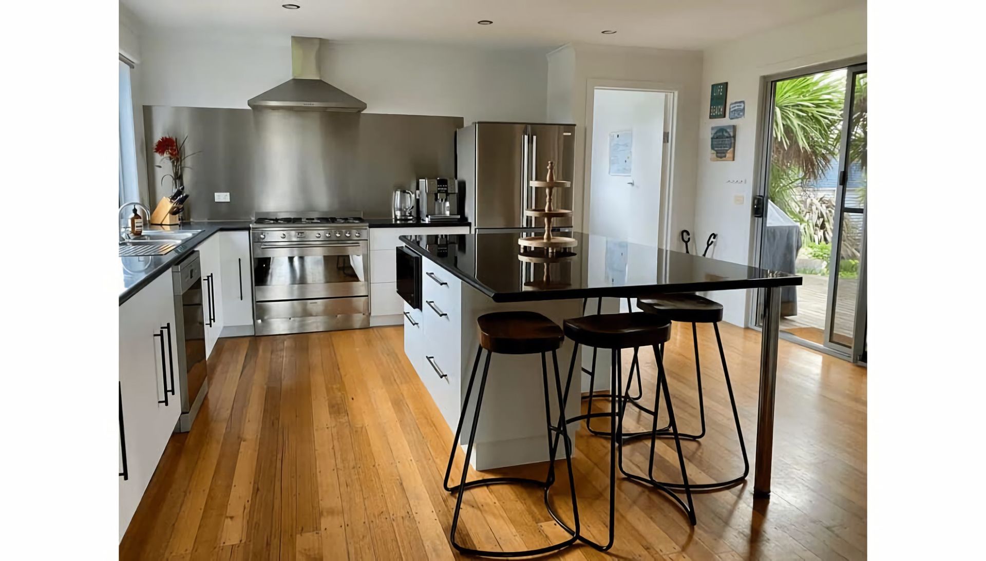Well-equipped kitchen with large island bench and breakfast bar, featuring 900mm gas-cooktop and electric oven, Sunbeam filtered coffee maker, blender, panini-press etc: cook up a storm between you, your family and friends!