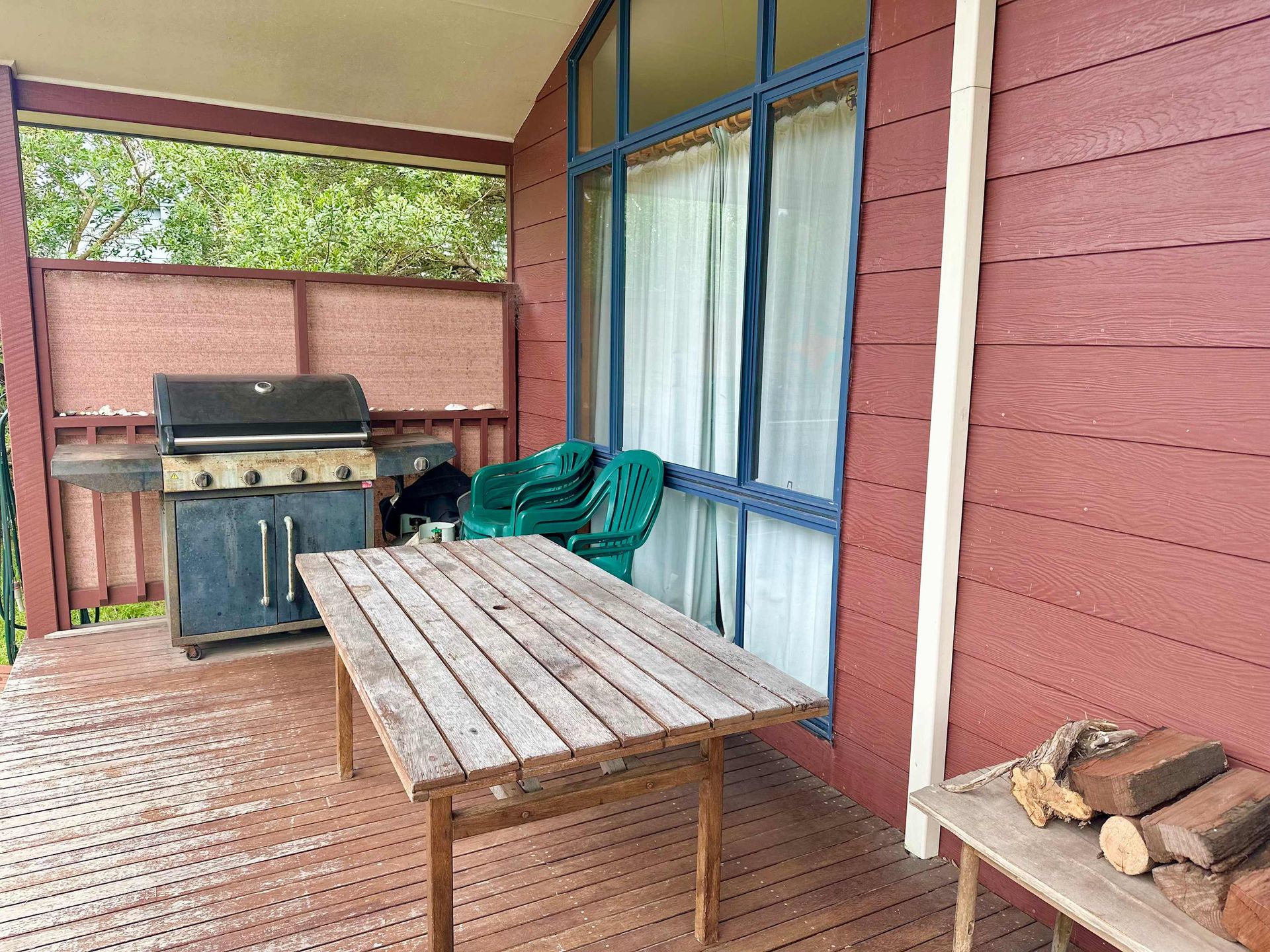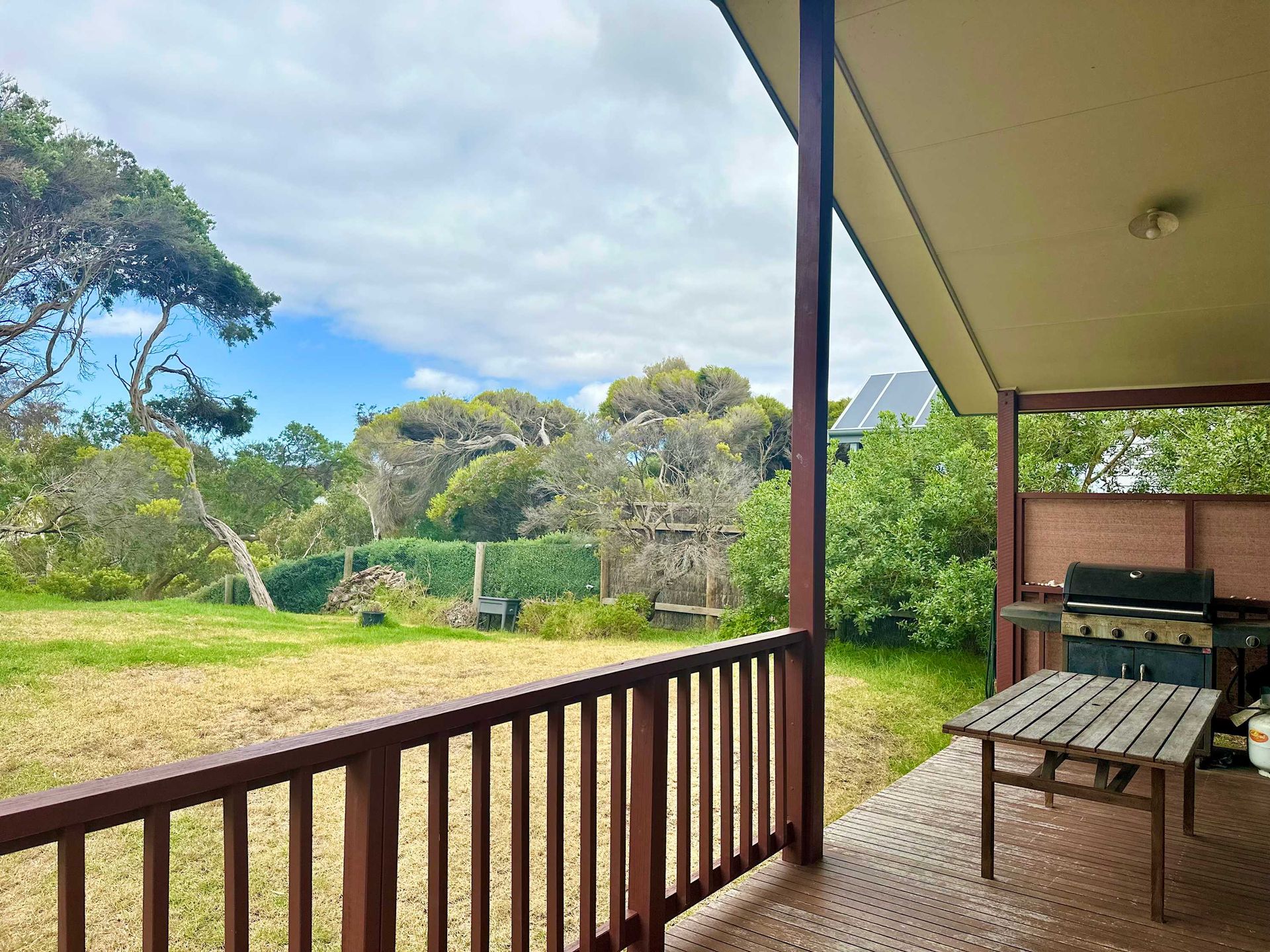 Boomerang Bach has a nice back veranda with a BBQ area.