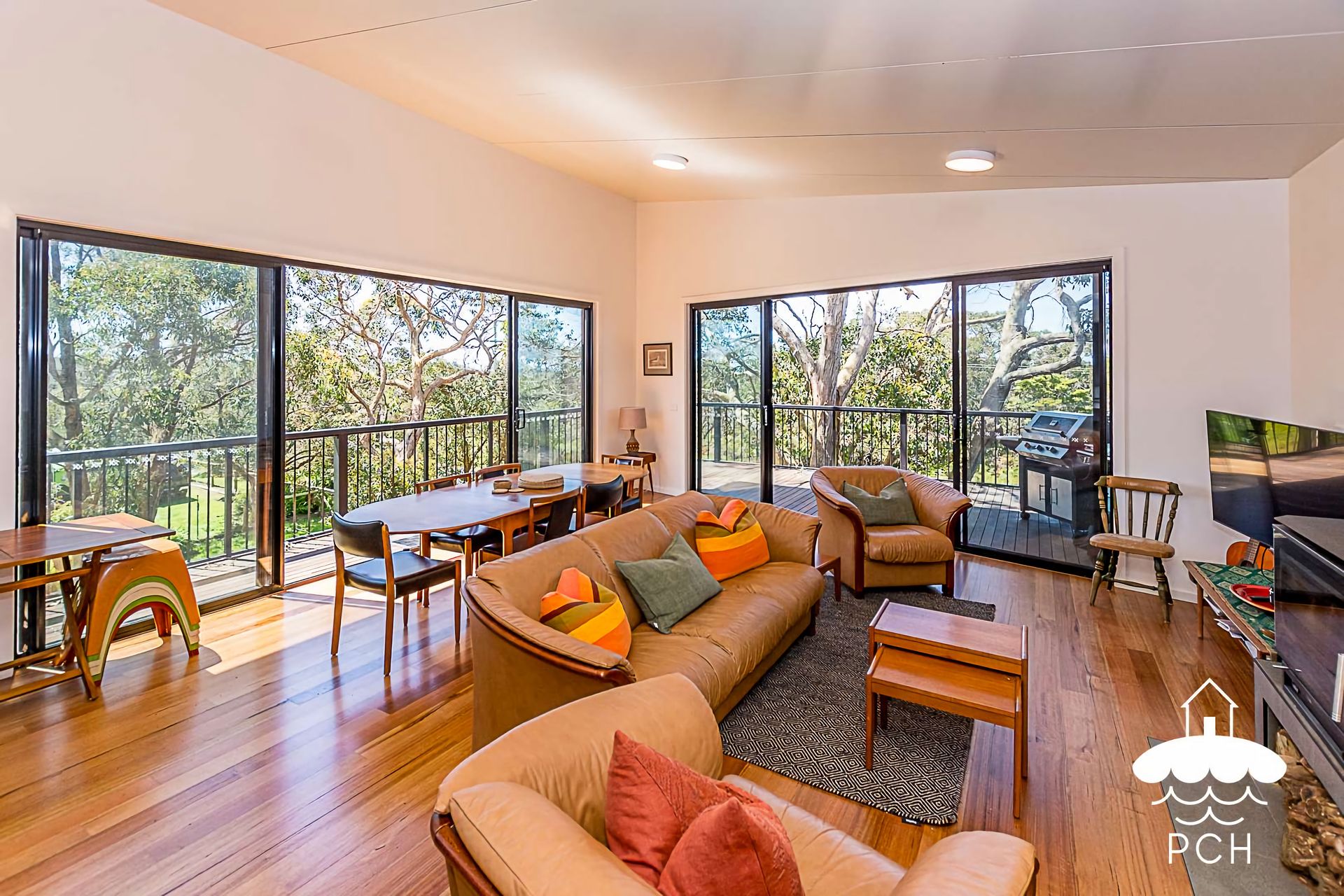 Perched among the trees, the house blends harmoniously into the natural surroundings, providing a sanctuary for relaxation and a base for adventure. Wake up to the crisp, clean air and the soothing sounds of birdsong, and unwind on your private deck with views towards Wilsons Promontory in one direction and the shimmering waters of Waratah Bay in the other.