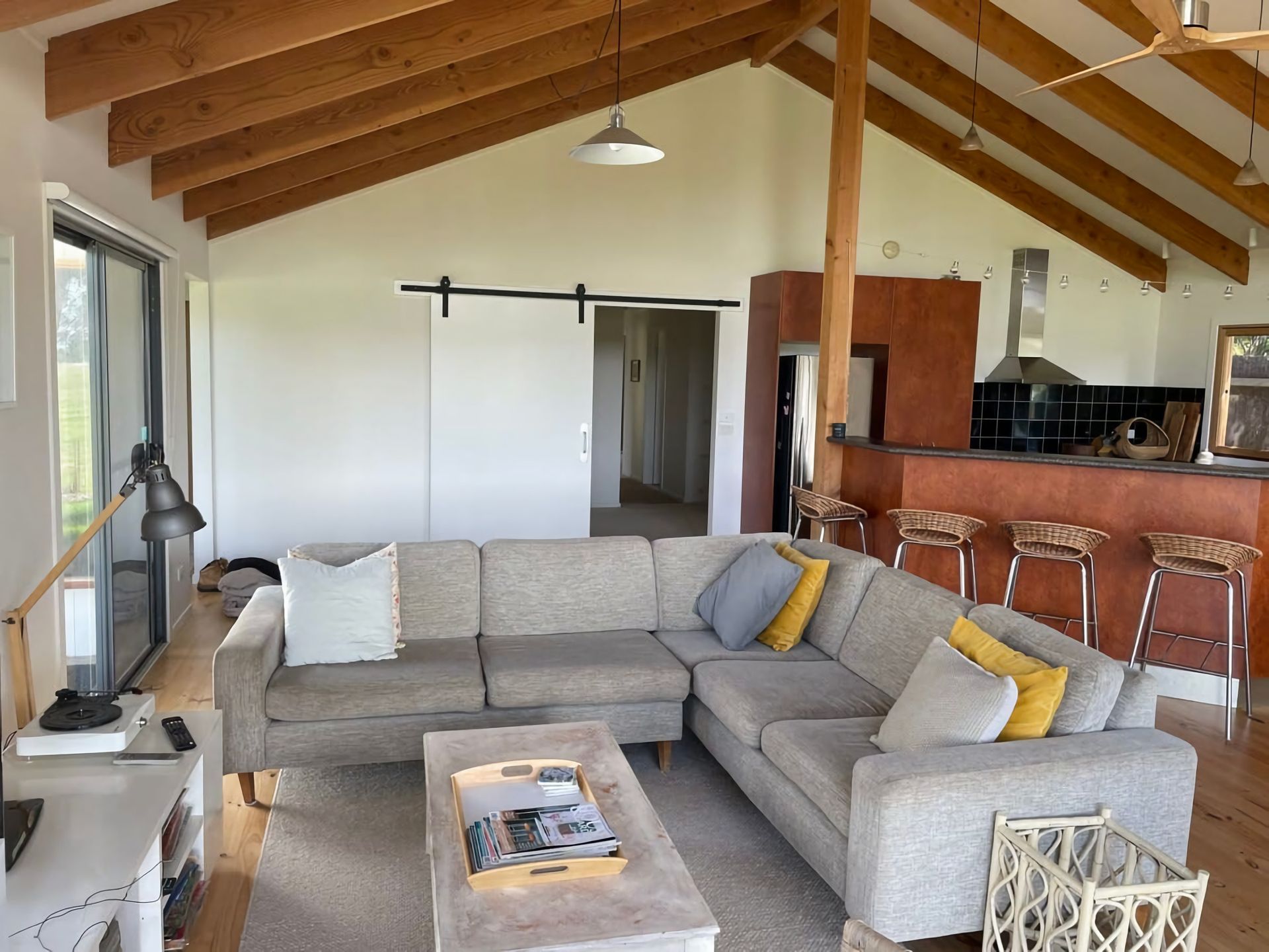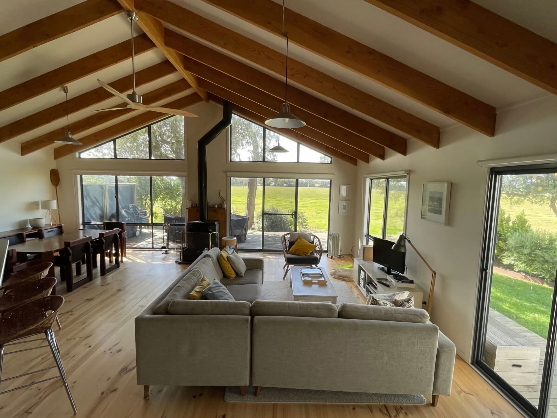 The stand out feature is the kitchen and living/dining area which includes a reverse cycle air conditioner. The area is very large and open adjoining a large timber deck with superb views over the farmland.