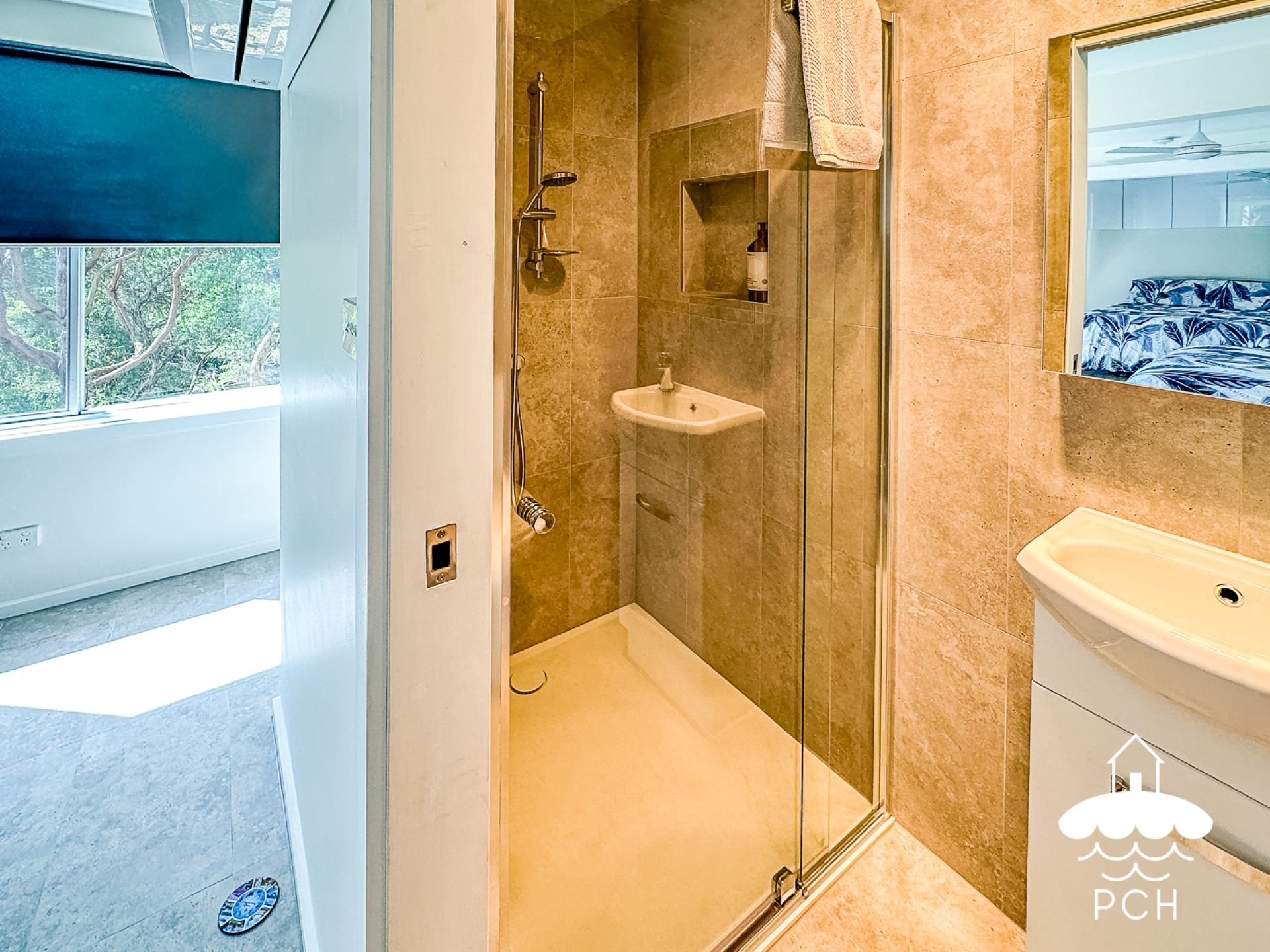 Downstairs offers a newly renovated retreat with two bedrooms and a bathroom, making it ideal for teens or families. This level also includes a TV for chill-out time.