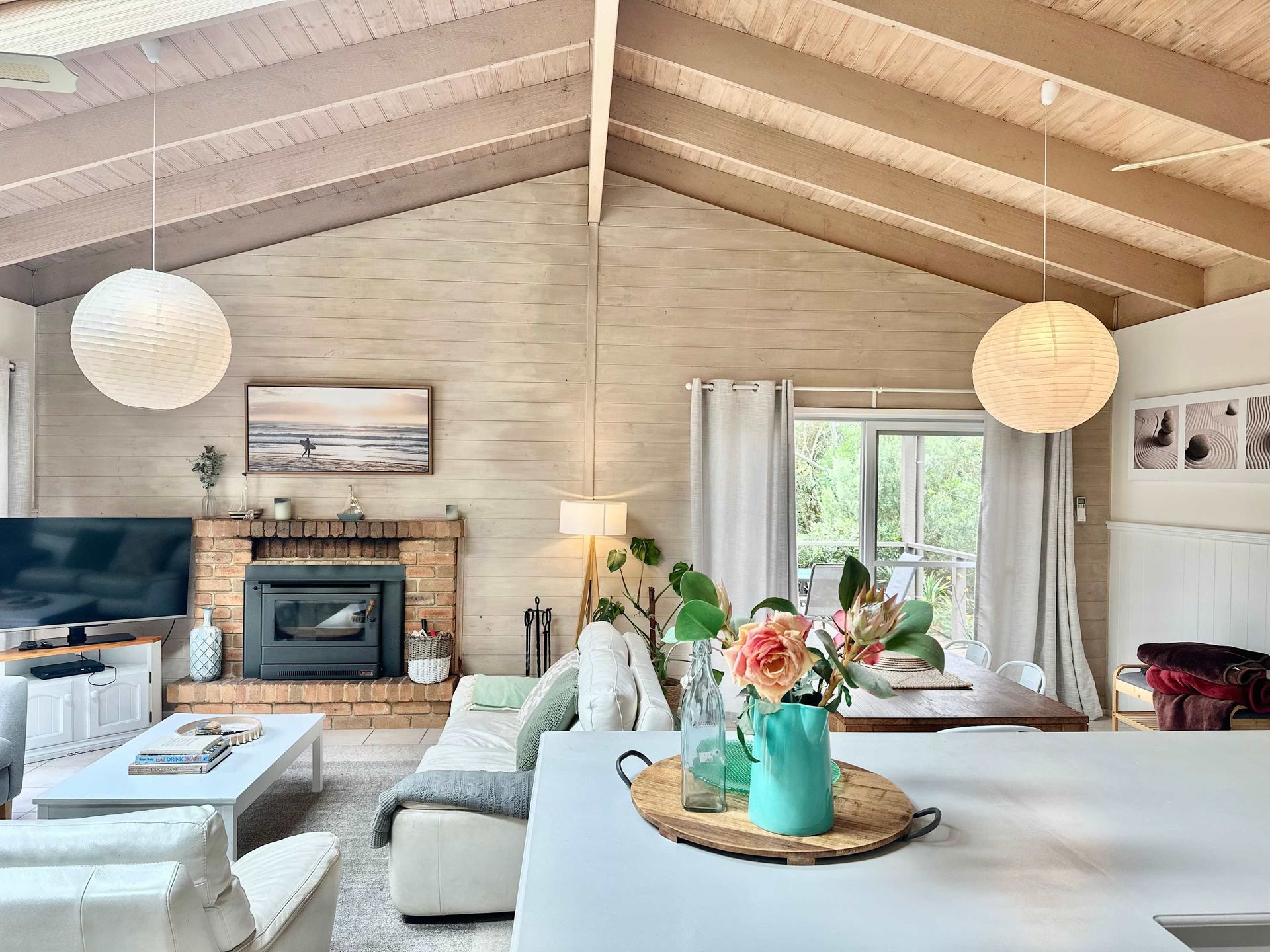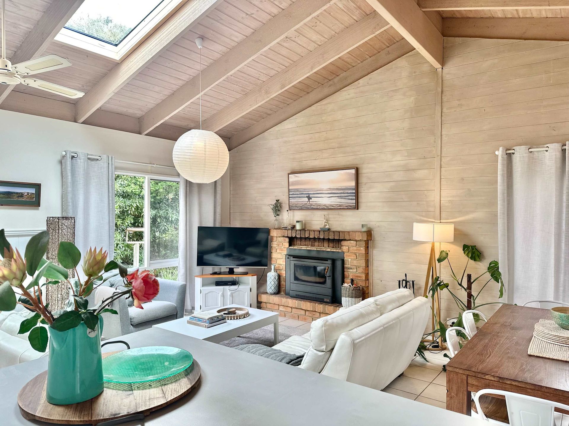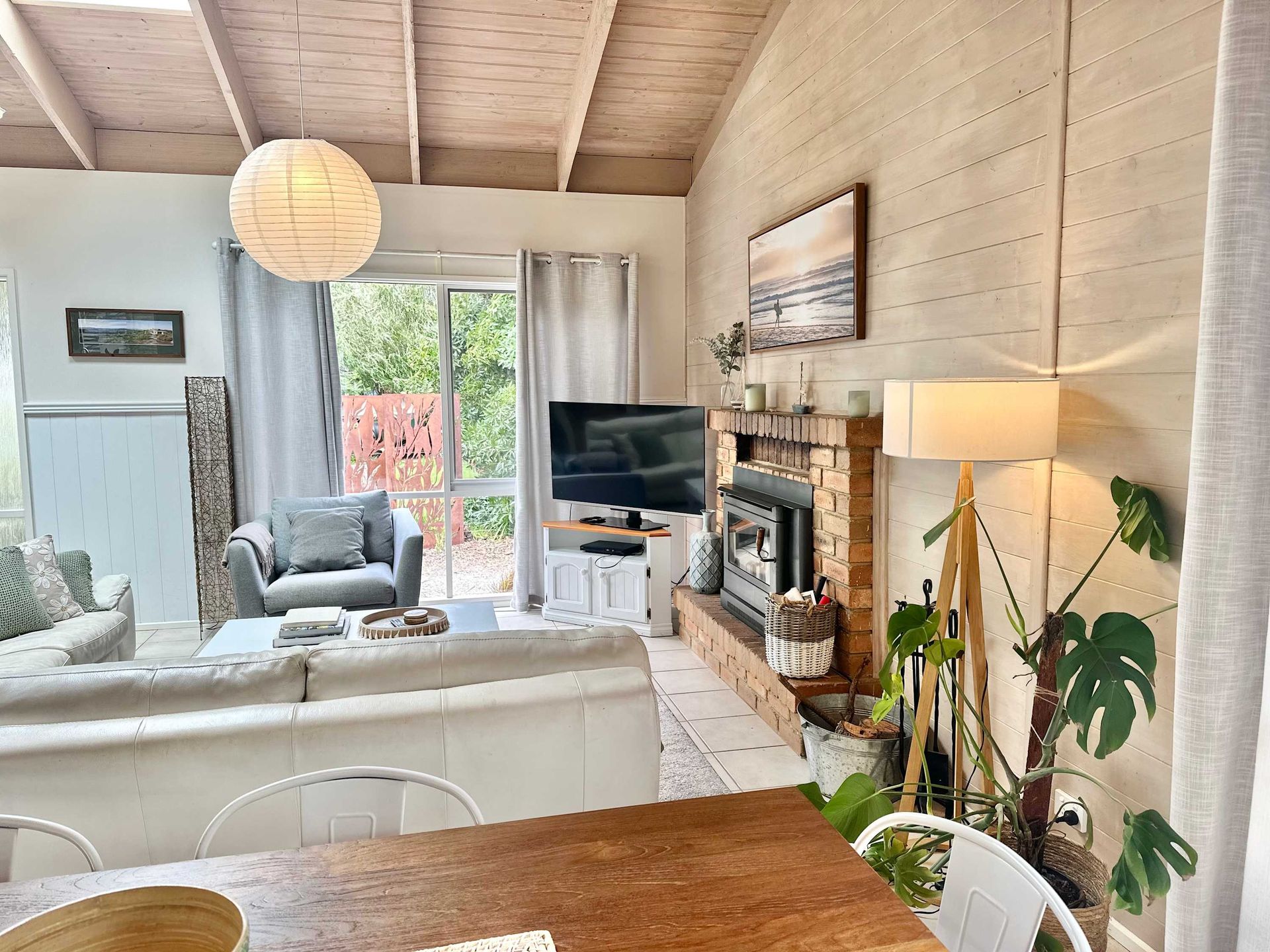 39 Ash Avenue is a modern family & pet friendly house featuring three bedrooms and main bathroom backing onto farmland with rural views and only a short walk to the beach, general, store and cafe.